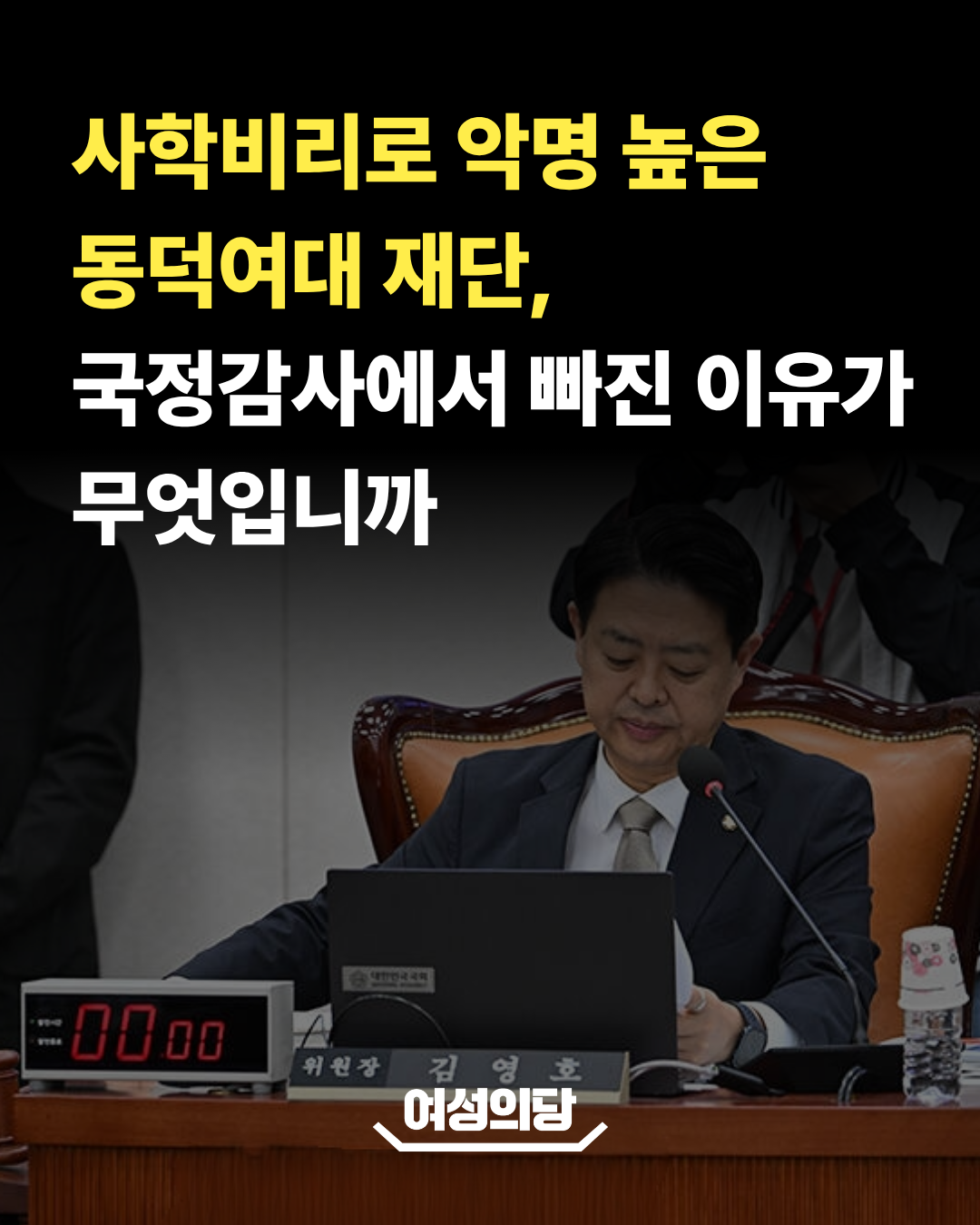 ![]() 국정감사 대상에서 빠진 동덕여대 사학재단, 국회는 동덕여대 사학비리 감사 나서십시오. 최근 국정감사에서 사립재단 강원학원 이사장의 횡령, 갑질 등 비리가 지적되었고, 교육위원회는 사학재단 비위의 심각성을 지적하며 철저한 수사를 주문했습니다. 그러나 정작 수억 원대의 교비 횡령, 방만한 가족경영, 비민주적 운영과 학생 권리 탄압으로 가장 선두에서 학생들의 교육권을 탄압해 온 동덕여대 사학비리 문제는 지난 3주간의 국정감사에서 단 한 차례도 다뤄지지 않았습니다. 수만 명의 시민이 동덕학원과 동덕여대 대학본부에 대한 즉각적인 수사와 감사를 강력히 요구해왔음에도, 국회는 동덕여대 사학비리 사안에 선택적인 침묵을 유지하고 있습니다. 여성의당은 지난 1년간 동덕여대 사학비리 문제 해결을 위한 국회의 개입을 촉구해왔습니다. 학생, 학부모, 시민들과 함께 동덕학원 및 대학본부에 대한 철저한 감사와 비리의 주범인 동덕학원 조원영 이사장의 소환을 요구했습니다. 그럼에도 국회는 수만 시민의 목소리를 들은 체 만 체 외면하고 있습니다.국회가 진정으로 사학 개혁과 학생 인권 보호 의지가 있다면, 국민의 질타가 가장 높았던 동덕여대 사안을 방치해서는 안 됩니다. 막대한 권력을 지닌 사립학교 재단의 폭거를 막고, 불법행위를 바로잡을 권한과 책임은 수사기관에만 부여된 것이 아닙니다. 사학재단의 불법행위로 인해 학생들의 권리가 침해되고, 수사기관의 공정한 수사마저 기대하기 어려운 상황이라면 국회가 나서야 합니다. 교육위원회에 당부합니다. 국회가 국민이 아닌 권력자의 눈치를 보고, 부조리를 지적하지 않는다면 국정감사는 결코 본연의 역할을 다할 수 없습니다. 교육위는 여대를 존속하고 사학비리를 바로잡으라는 시민들의 요구를 경청하고, 조원영 일가를 소환해 동덕학원이 벌인 만행을 낱낱이 파헤치고 엄중히 책임을 물어야 합니다. |